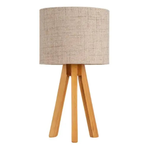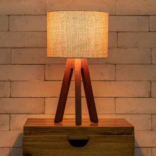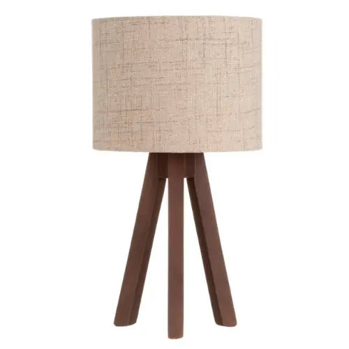 - Material: Base de madera maciza y pantalla de tela.